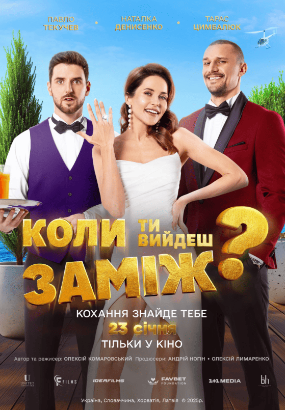 “When Will You Marry” is a light Ukrainian comedy with hints of romance, crime, and Mediterranean charm — about betrayal, vacation in Croatia, and unexpected twists of fate. Beautiful locations, familiar faces and a mood that is suitable for an evening without unnecessary thoughts.