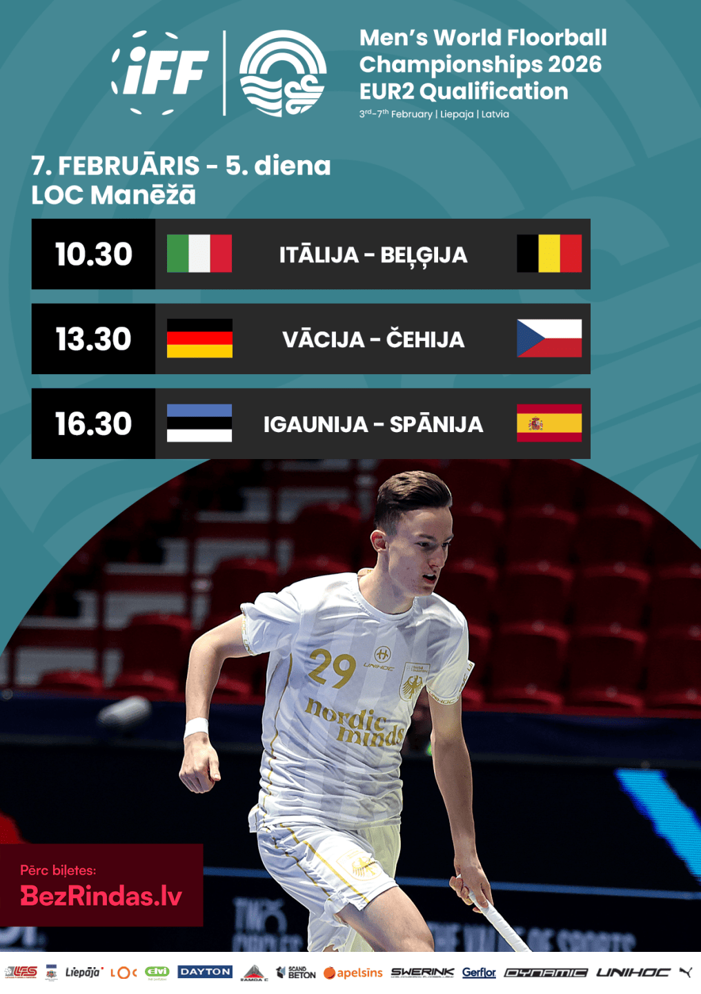 No 3. līdz 7. februārim Liepājas Olimpiskā centra manēžā norisināsies 2026. gada pasaules čempionāta florbolā vīriešiem kvalifikācijas turnīrs, kurā  sešas izlases izspēlēs trīs ceļazīmes uz finālturnīru.