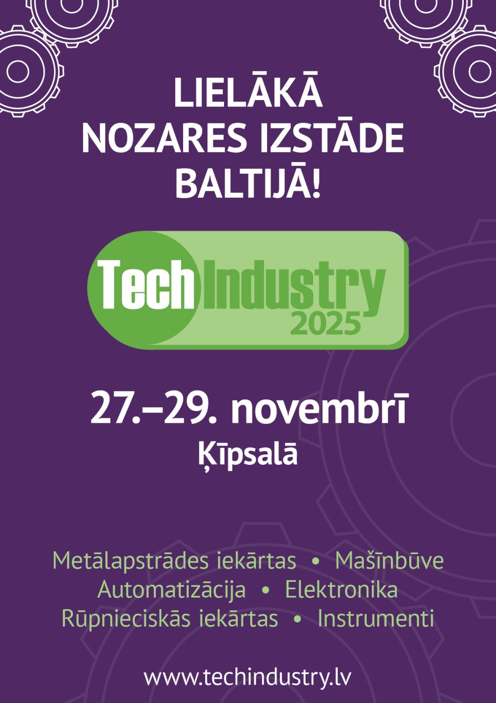 Sekojiet jaunumiem mājaslapā: www.techindustry.lv un Facebook: www.facebook.com/fairtechindustry/