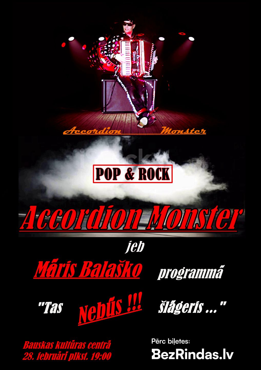 ''Accordion Monster'' ir muzikāls projekts, kas pārkāpj žanru robežas, un apvieno unikālu elektroniskā akordeona spēli ar neparastu skanējumu, pop & rock mūzikas neizsīkstošo enerģiju un harizmātisko priekšnesumu.