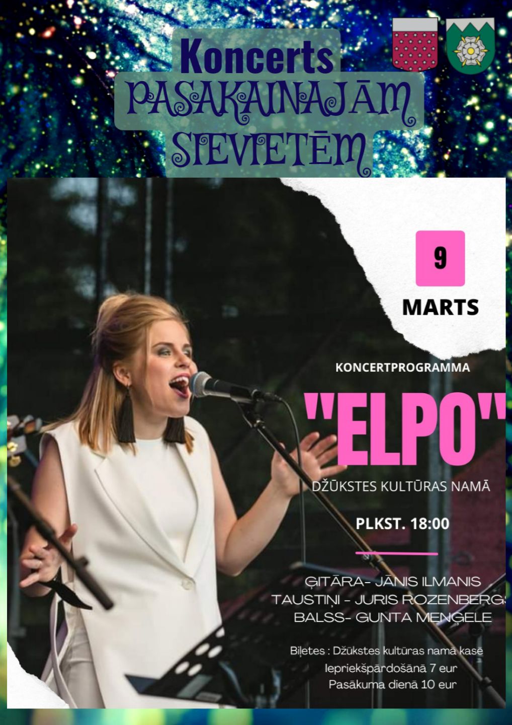 Sieviešu dienai veltīts koncerts "Pasakainajām sievietēm" Džūkstes kultūras namā. Ģitāra Jānis Ilmanis, taustiņi Juris Rozenbergs, balss Gunta Menģele.