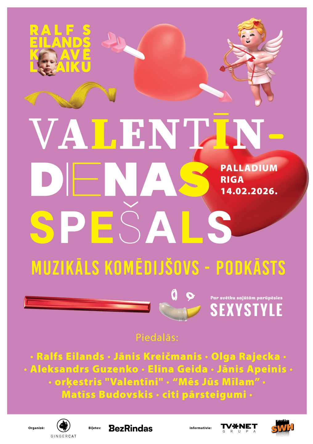 Šovā skatītājus priecēs Ralfs Eilands, Jānis Kreičmanis, Olga Rajecka, Aleksandrs Guzenko, Elīna Geida, Jānis Apeinis, Matīss Budovskis, "Mēs Jūs Mīlam", orķestris "Valentīni" kā arī citi pārsteigumi.