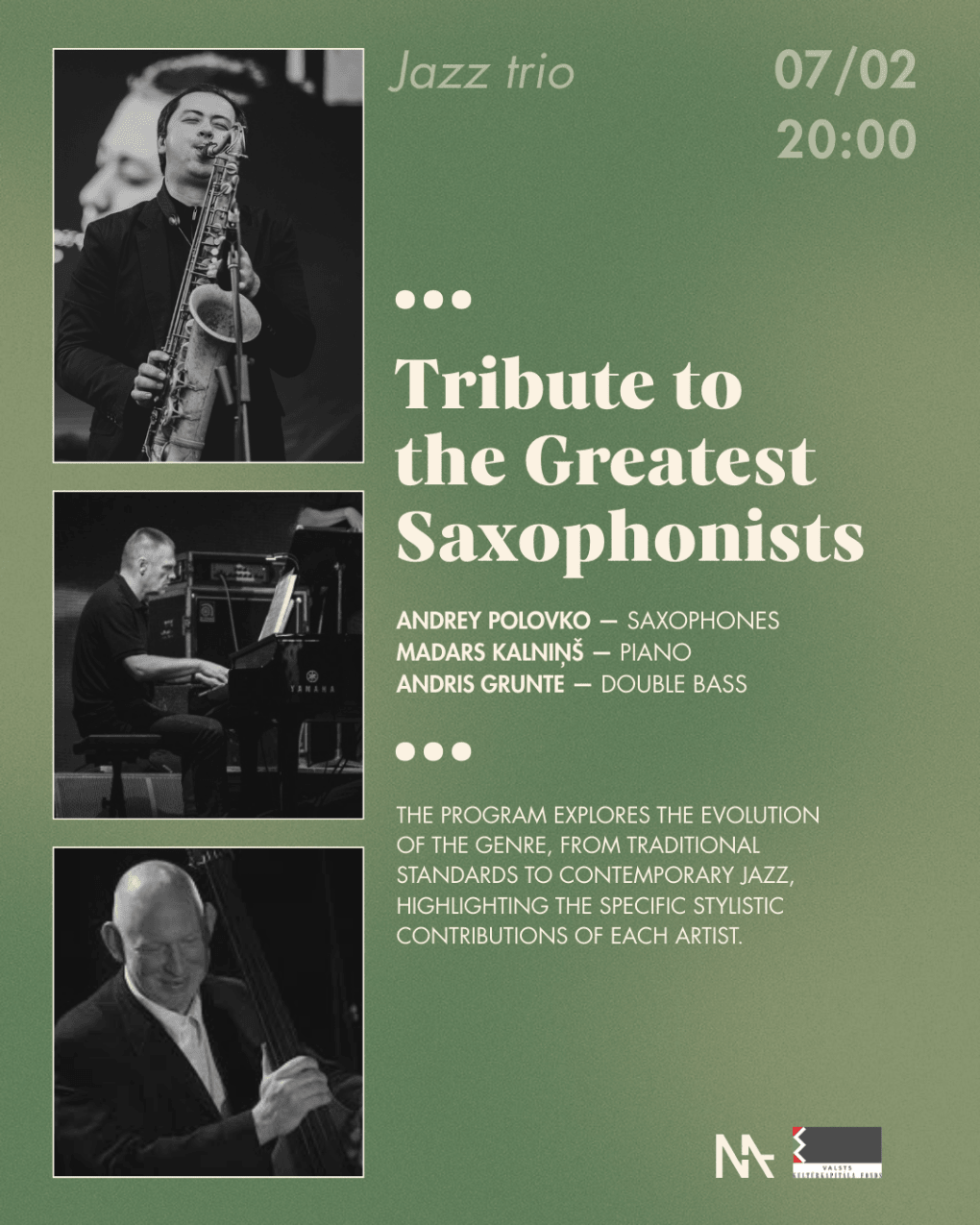 Организатор мероприятия "Tribute to the Greatest Saxophonists | Andrey Polovko trio": MASA studija SIA